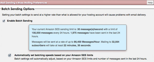 Batch settings auto-adjust to Amazon SES sending quotas.
