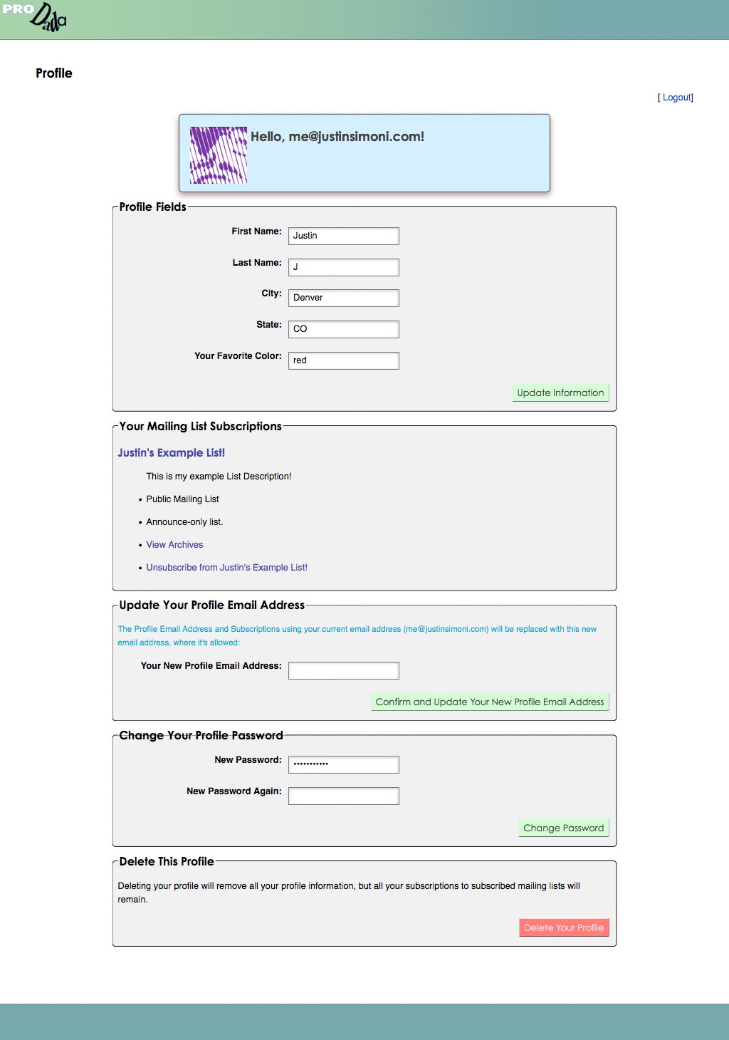 The Dada Mail Support Docs on Profiles.